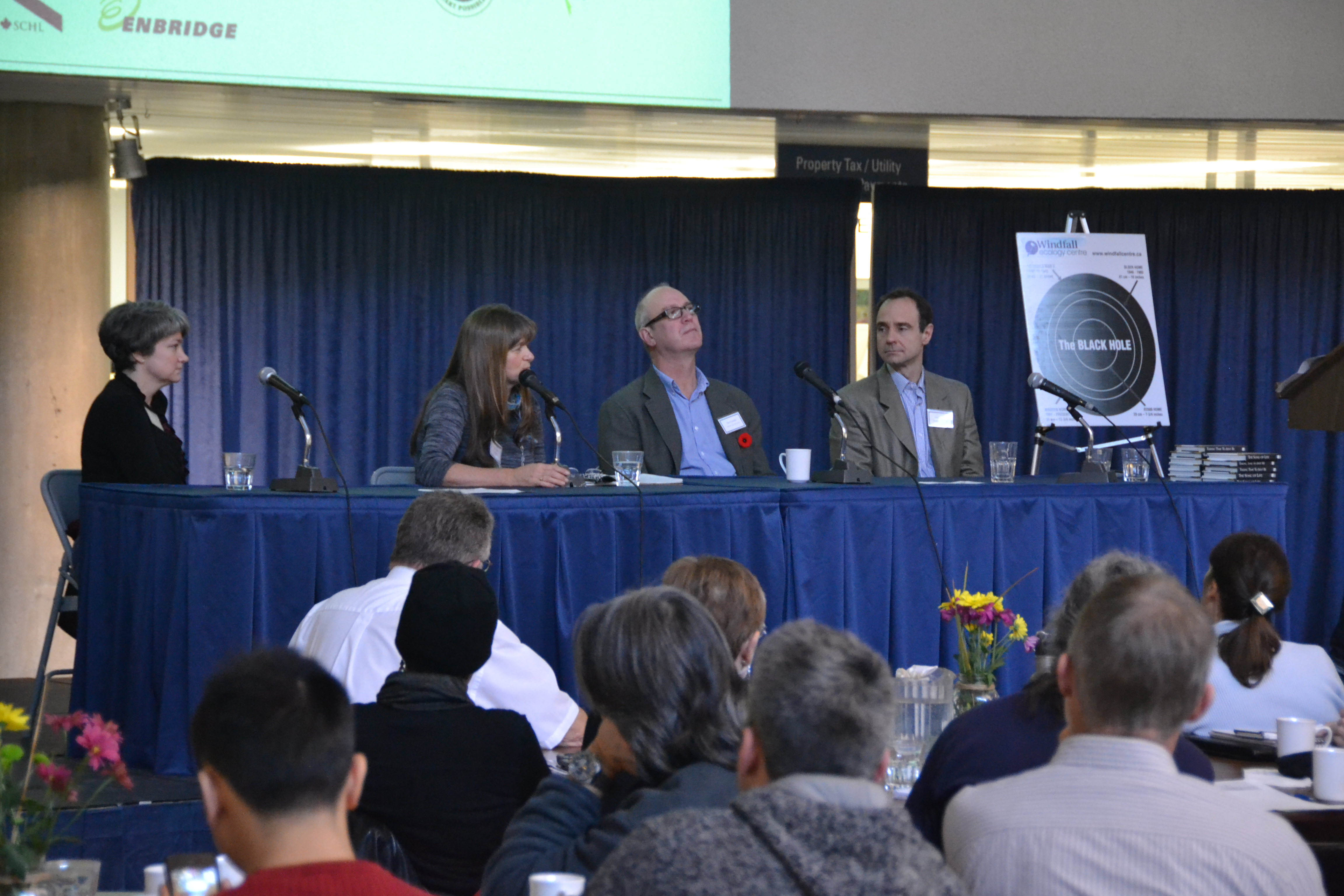 Panelists field questions from the audience. From Left to right Sandra Lester, Gail Lawlor, Paul Caverley and Greg Labbé.