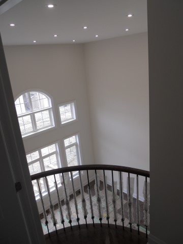 Could have been a wickedly large master bedroom and now, who’s going to change the pot lights when they burn out? The video below gives a glimpse of the huge master bedroom, a huge skylight and two areas of the second floor fenced-off.
