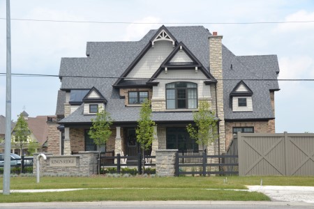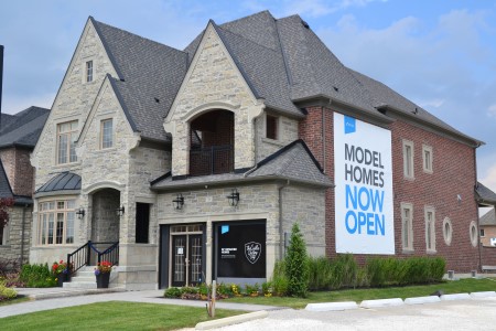 With more peaks and valleys than the NASDAQ, this model house is representative of the mini chateau going up around Toronto.
