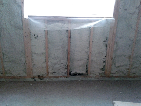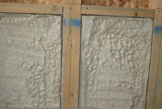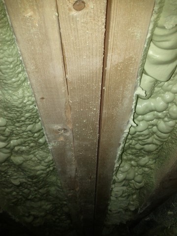 This section of 2LBS foam went off-ratio and the crew should have cleaned out and re-sprayed new foam.