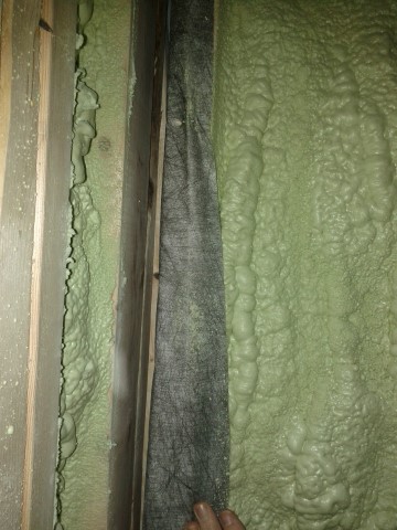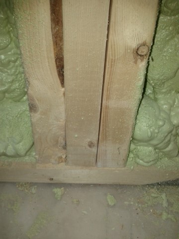 The foam in the above photo pulled away from the studs and even 1/2″ all around. This is not the wood drying its foam not being manufactured (i.e. sprayed) to specification.
